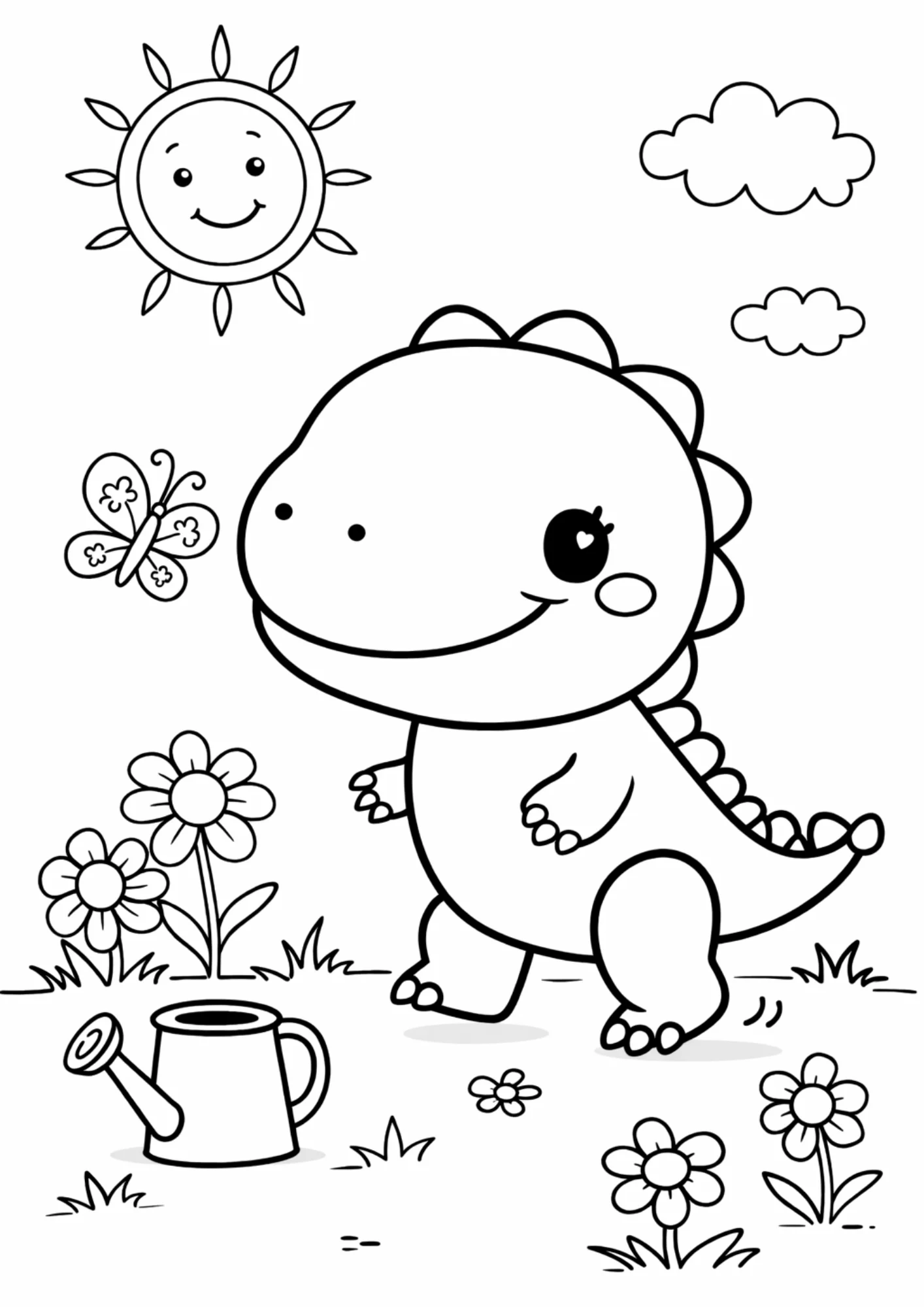 Dinossauro Feliz no Jardim para Colorir